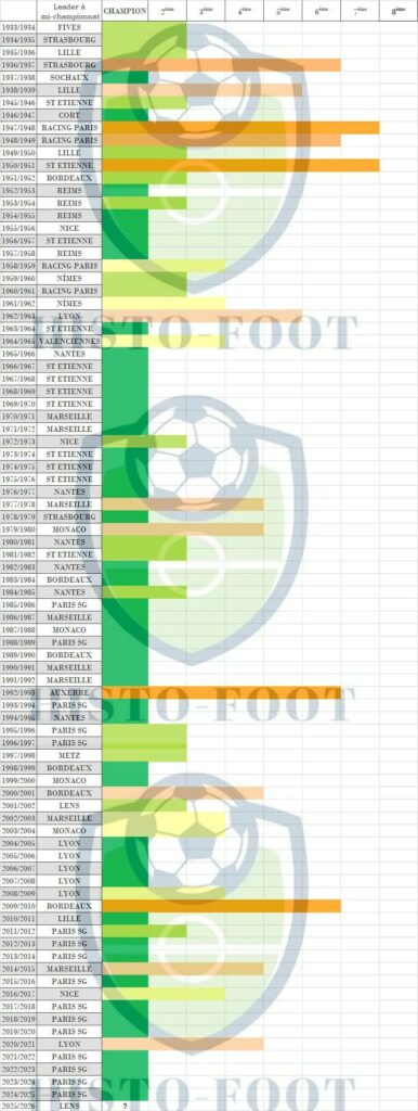 Répartition des champions de France depuis 1933