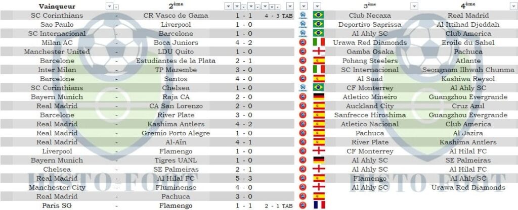 Palmarès Coupe Intercontinentale 1960 - 2004