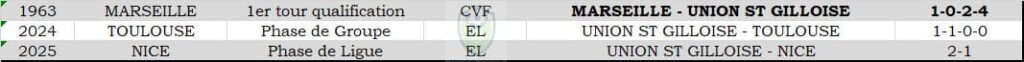 Historique des rencontres de l'Union St Gilloise contre des clubs français
