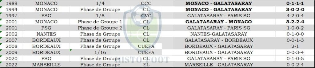 Historique des rencontres de Galatasaray contre des clubs français