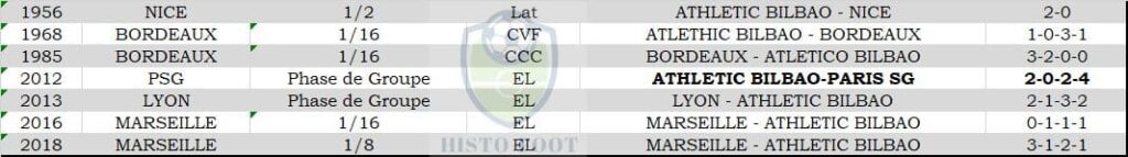 Historique des rencontres de l'Athletic Bilbao contre des clubs français