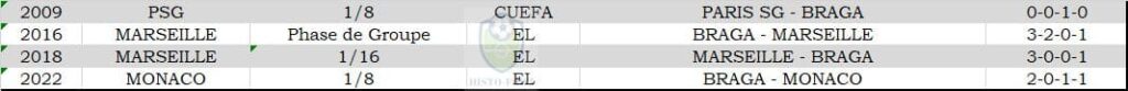 Historique des rencontres de Braga contre des clubs français