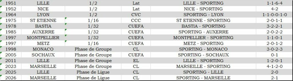 Historique des rencontres du Sporting Lisbonne contre des clubs français